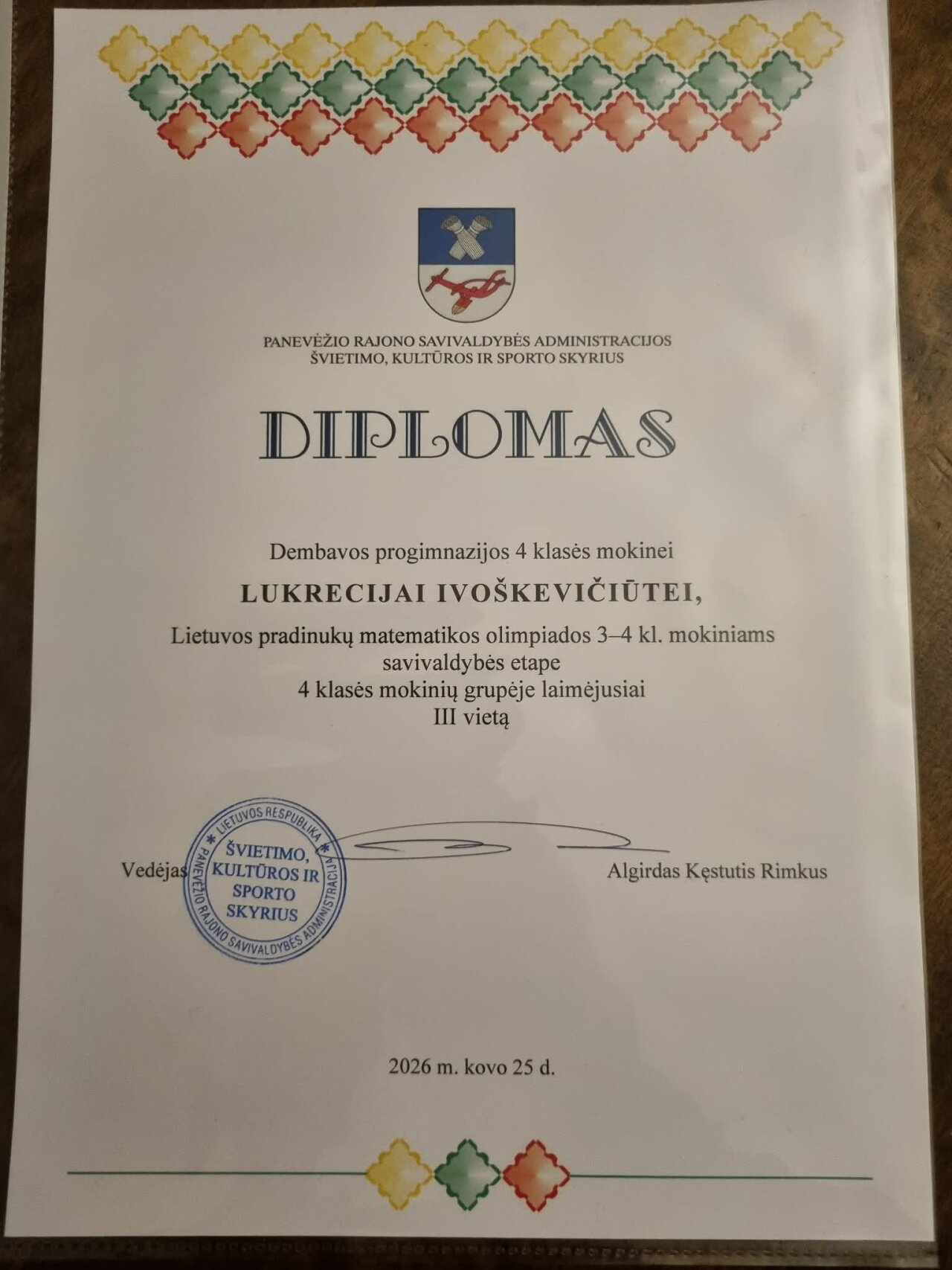 Matematikos olimpiados prizininkė