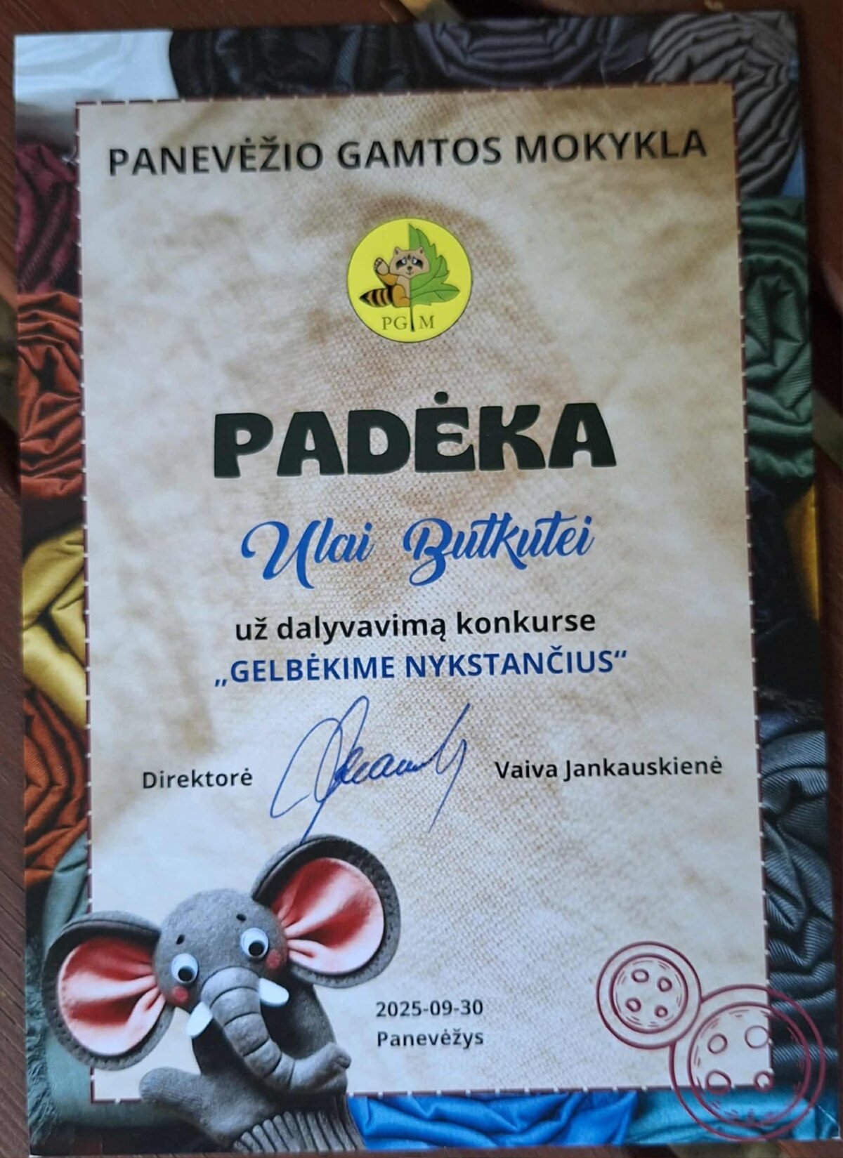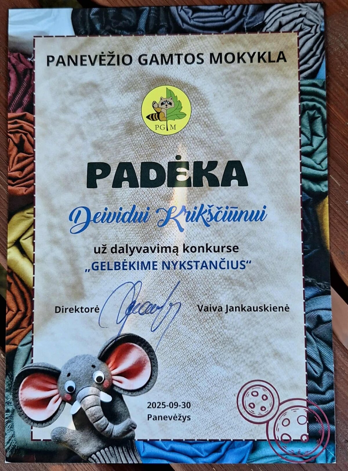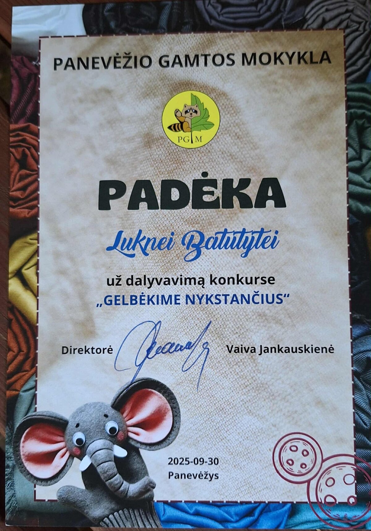 Technologijų pamokos metu mokiniai turėjo sukurti pirštinę, dekoruotą nykstančio saugomo gyvūno atvaizdu. Į konkursą buvo išsiųsta dešimt kūrybinių darbų.