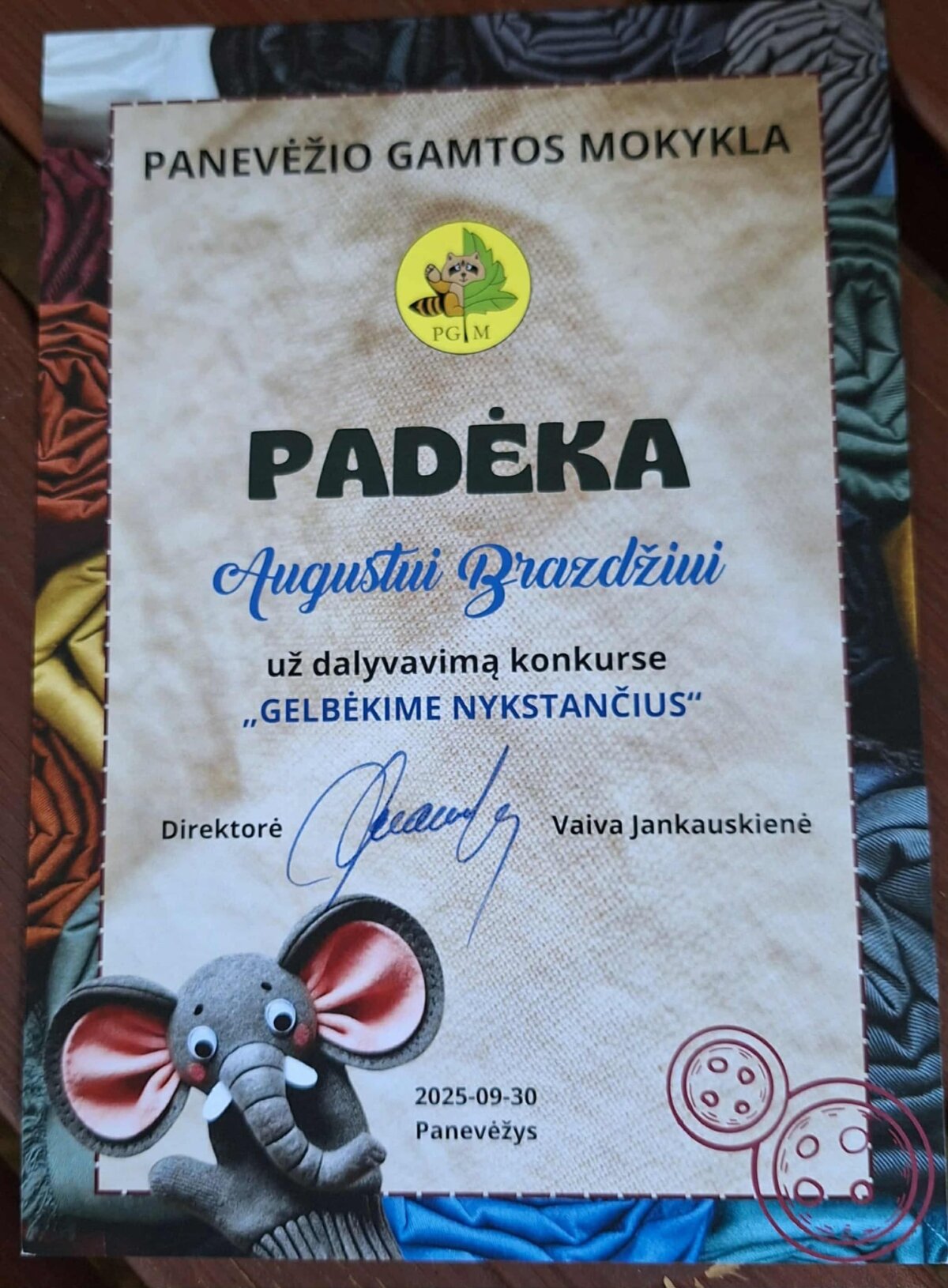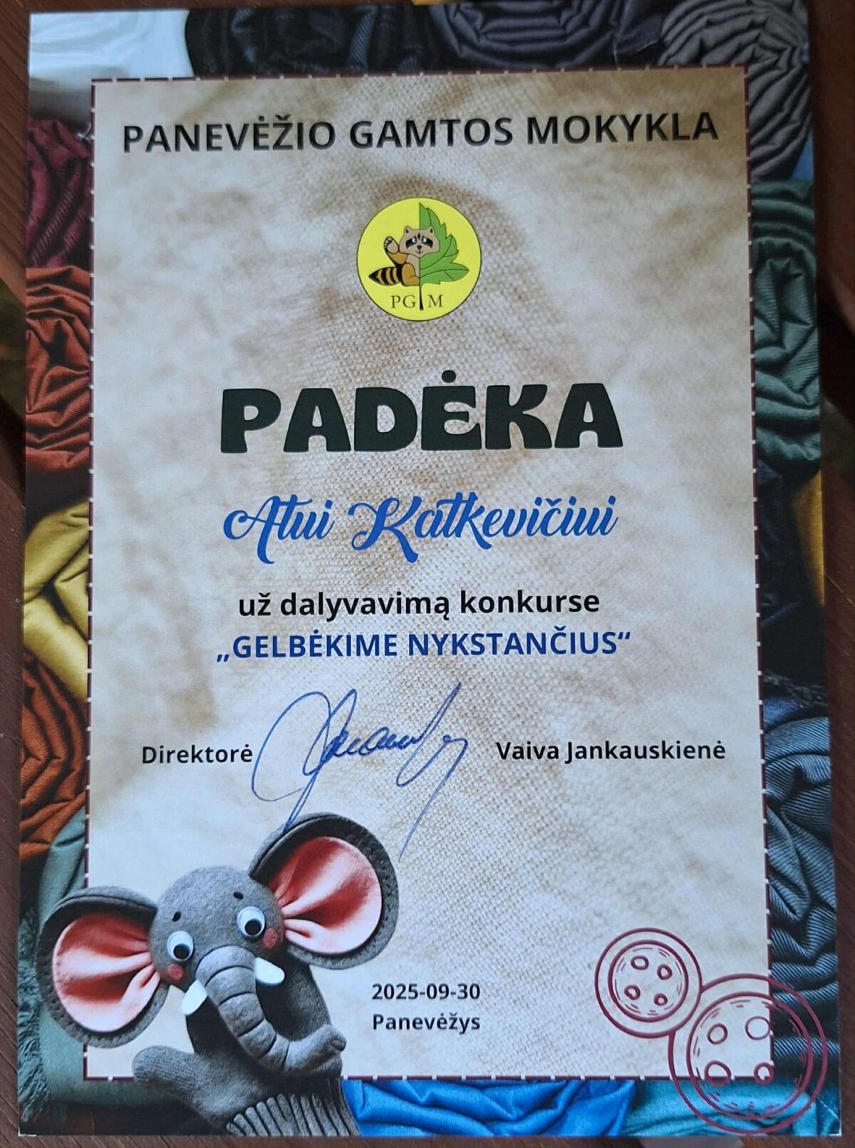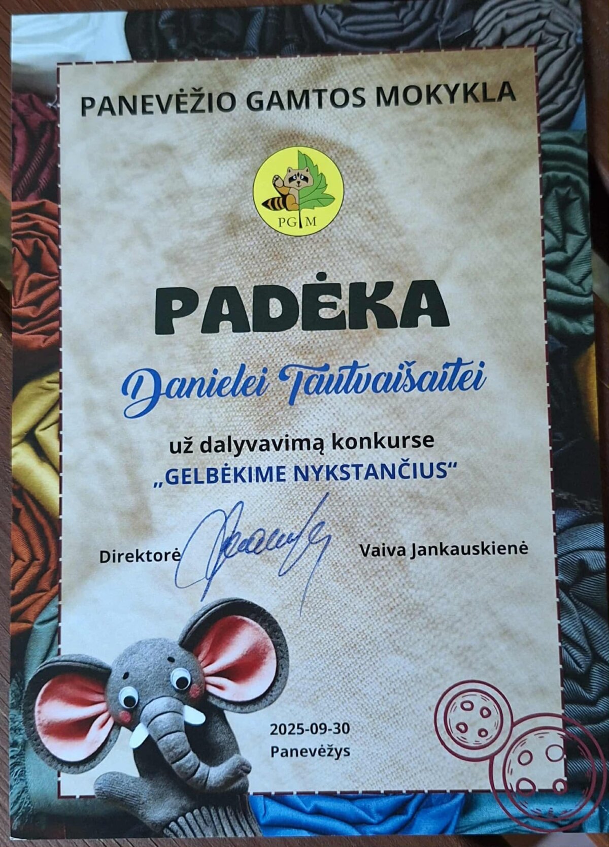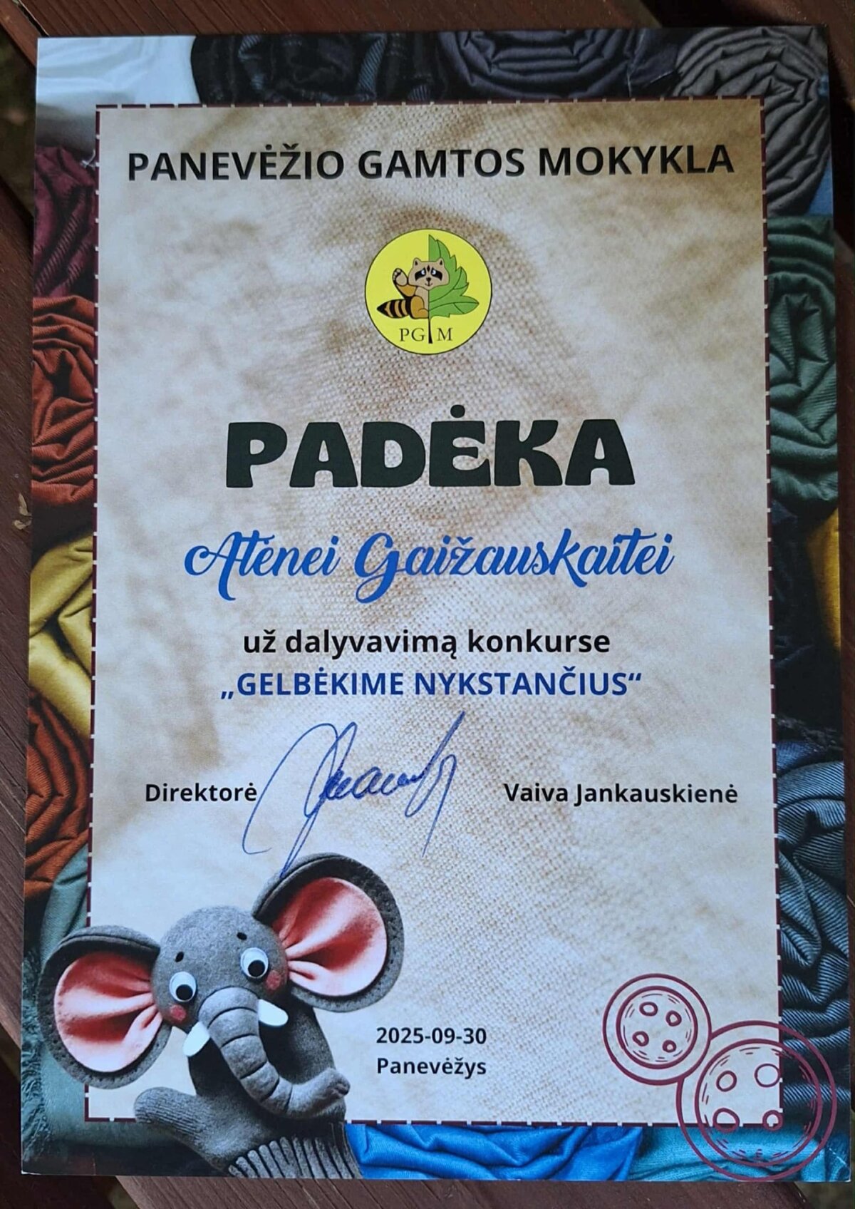 Technologijų pamokos metu mokiniai turėjo sukurti pirštinę, dekoruotą nykstančio saugomo gyvūno atvaizdu. Į konkursą buvo išsiųsta dešimt kūrybinių darbų.