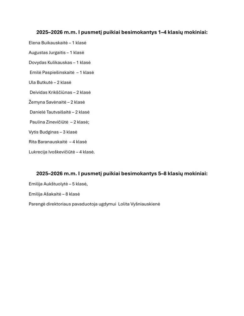 I pusmetį puikiai besimokantys mokiniai