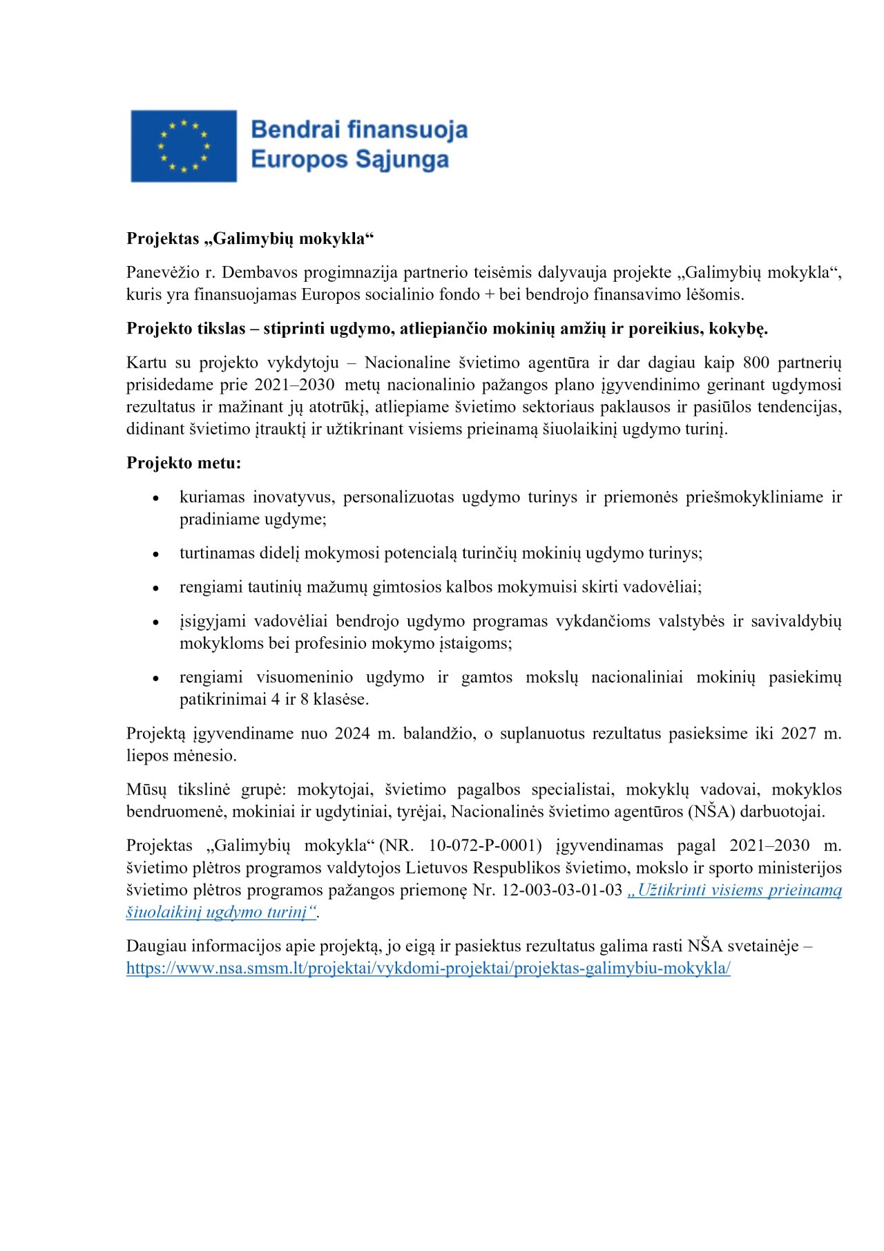 Vasario 1 d. mokykloje vyko pamokos kitose erdvėse -