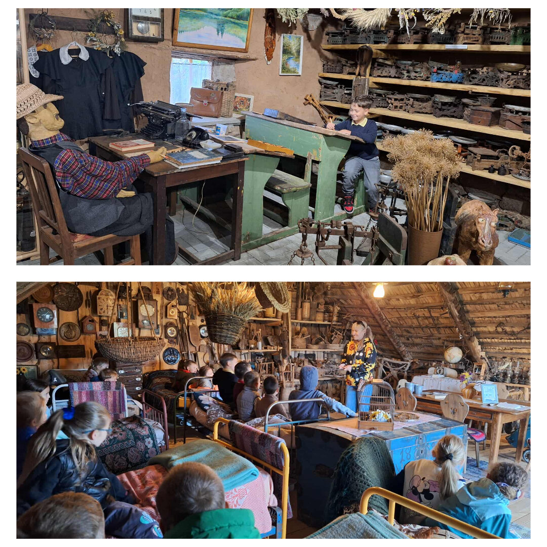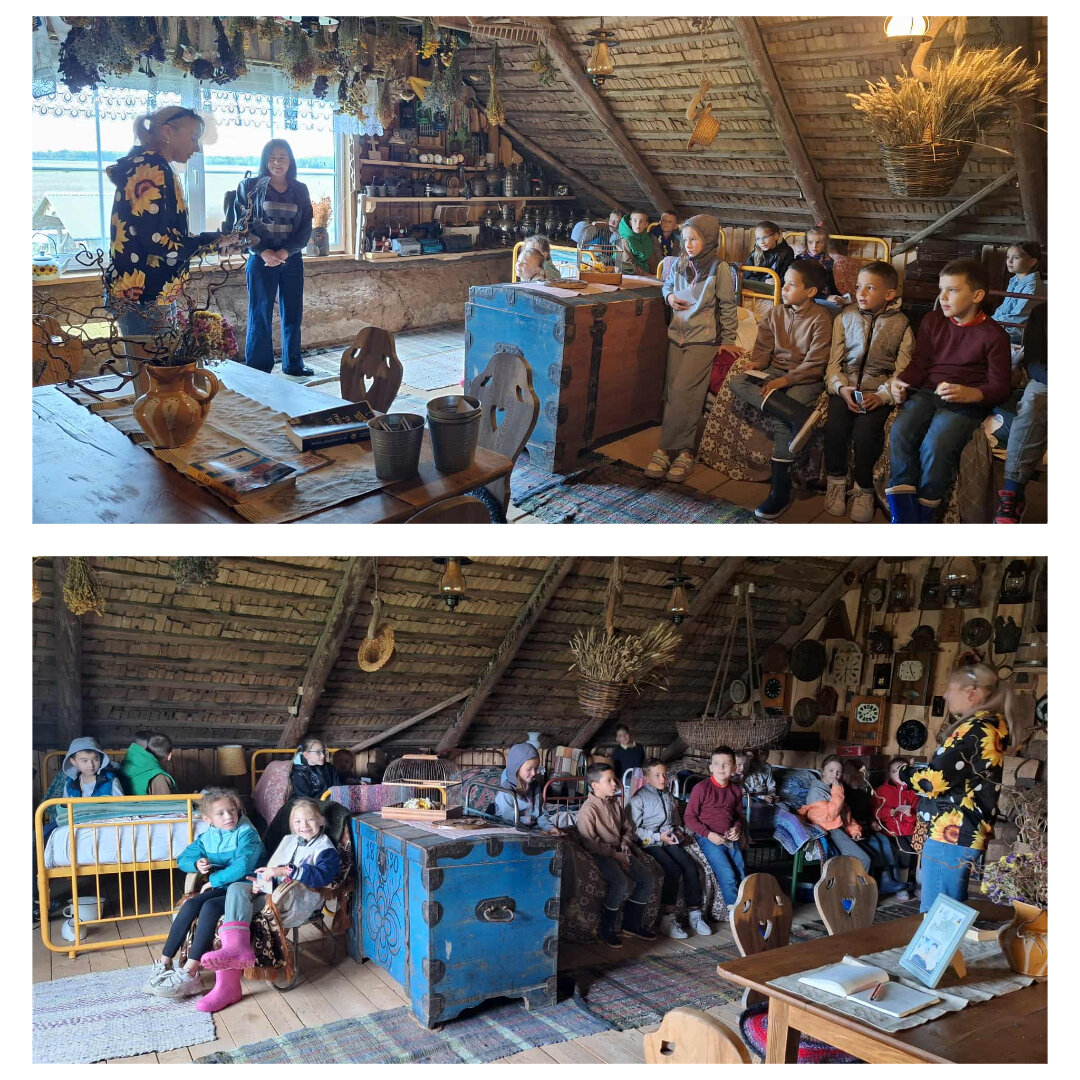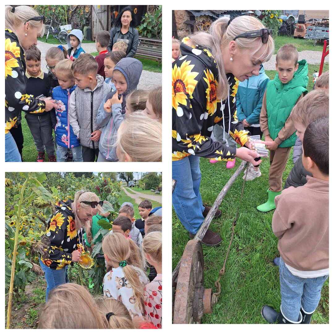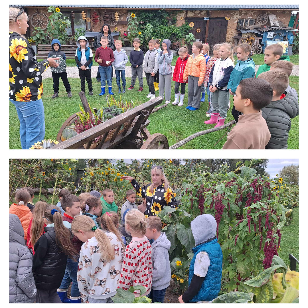 Čia mokiniai turėjo galimybę apžiūrėti daugybę senovinių buities rakandų, bandė atspėti jų paskirtį bei dalyvavo edukaciniame užsiėmime „Medinė saulėgrąža“. Sodybos šeimininkė visus vaišino saulėgrąžų arbata su medumi, sausainiais su saulėgrąžomis, saulėgrąžų chalva bei saulėgrąžų chalvos ledais. Grįžome kupini gerų emocijų, įspūdžių ir naujų žinių apie senovės gyvenimo būdą.