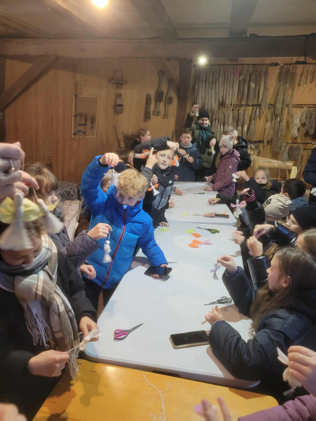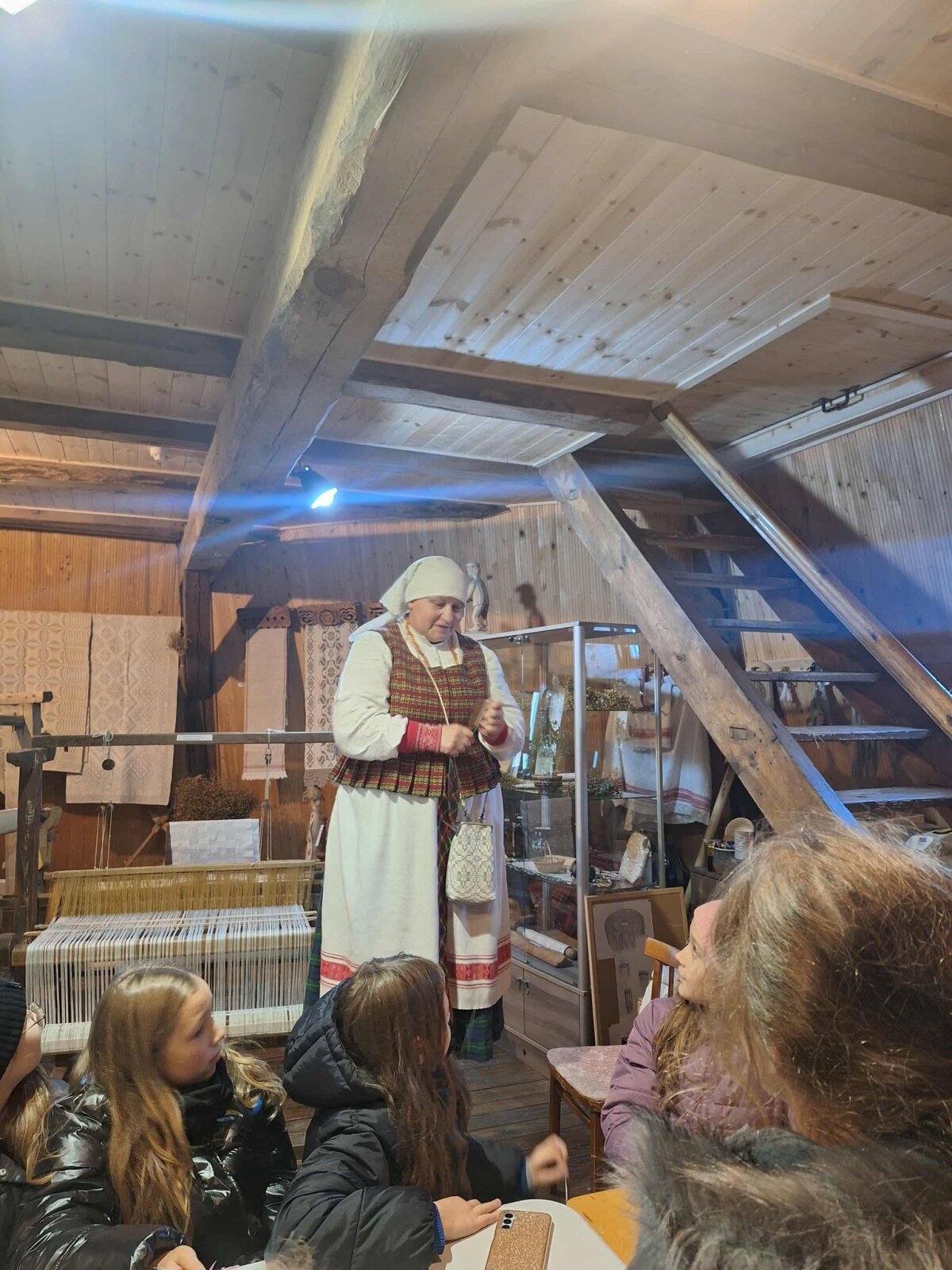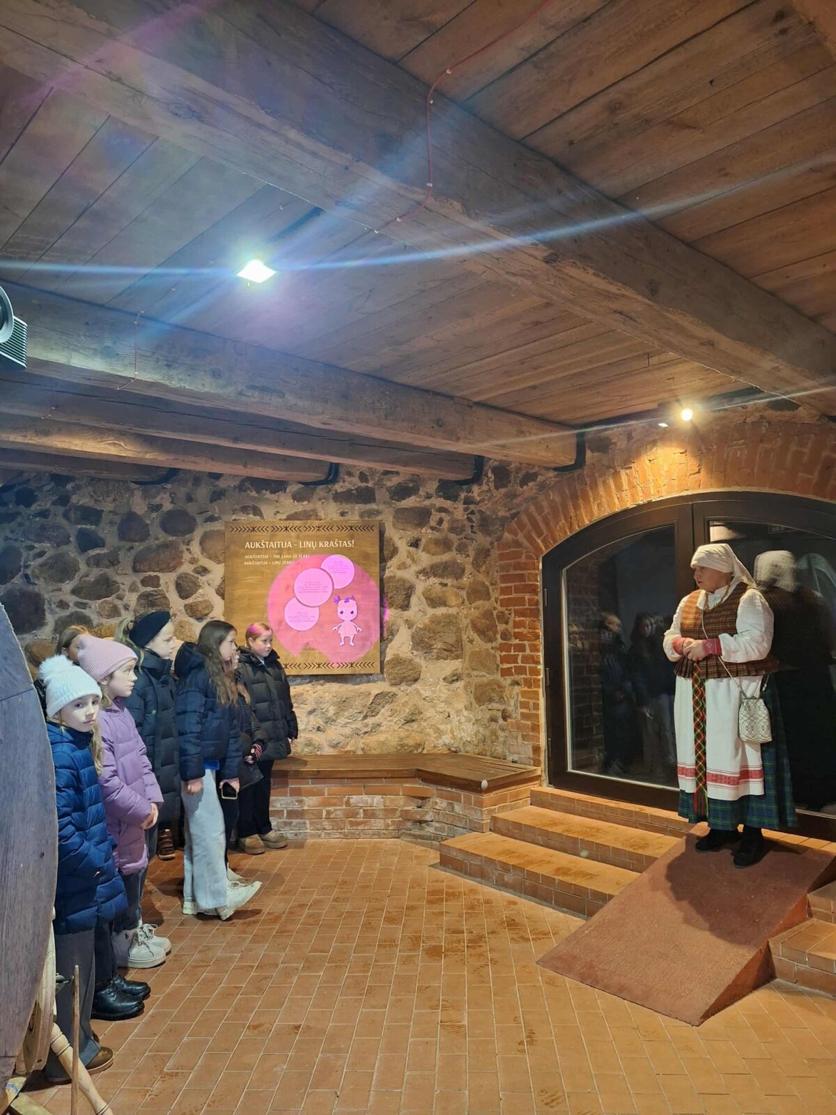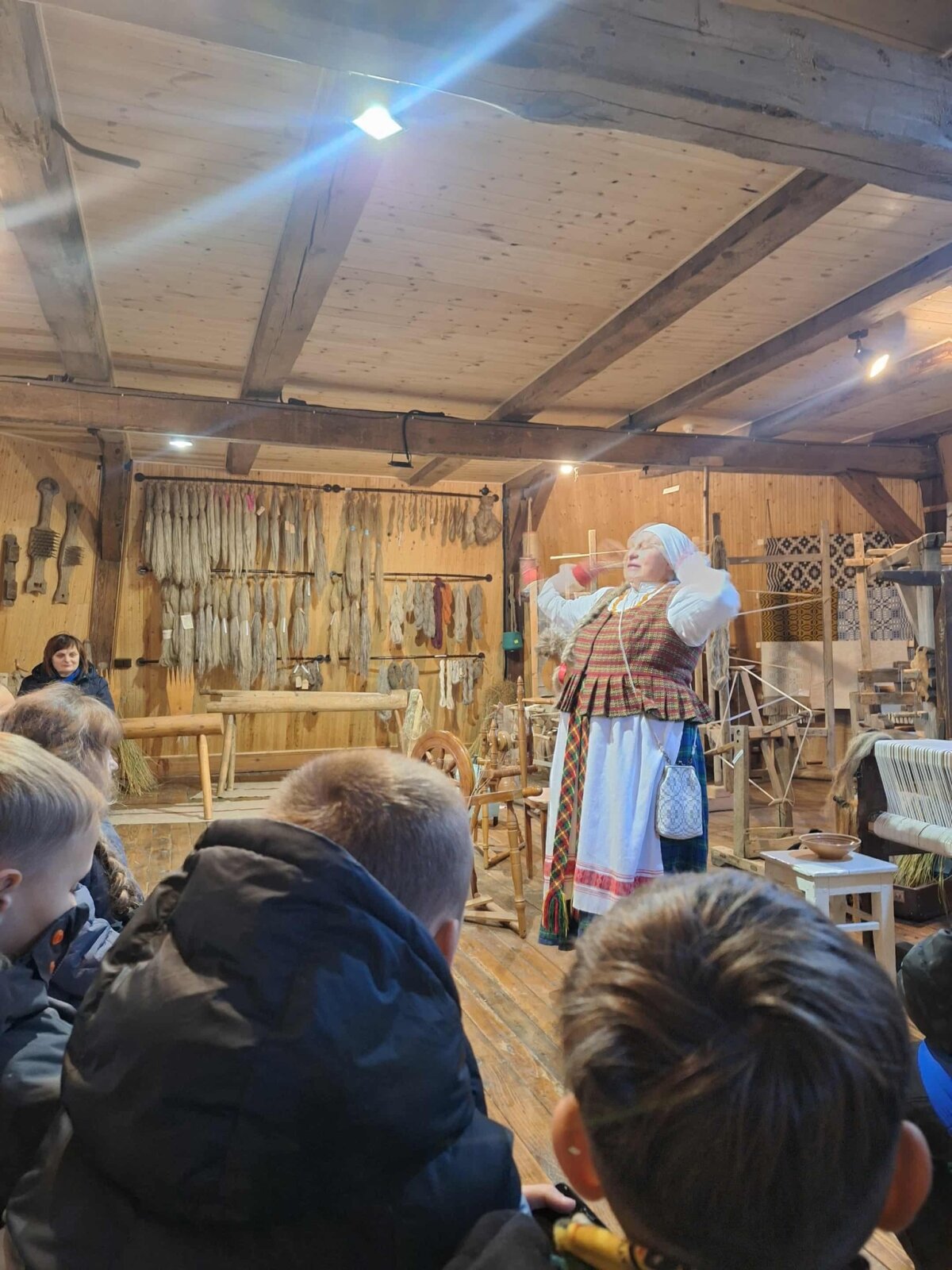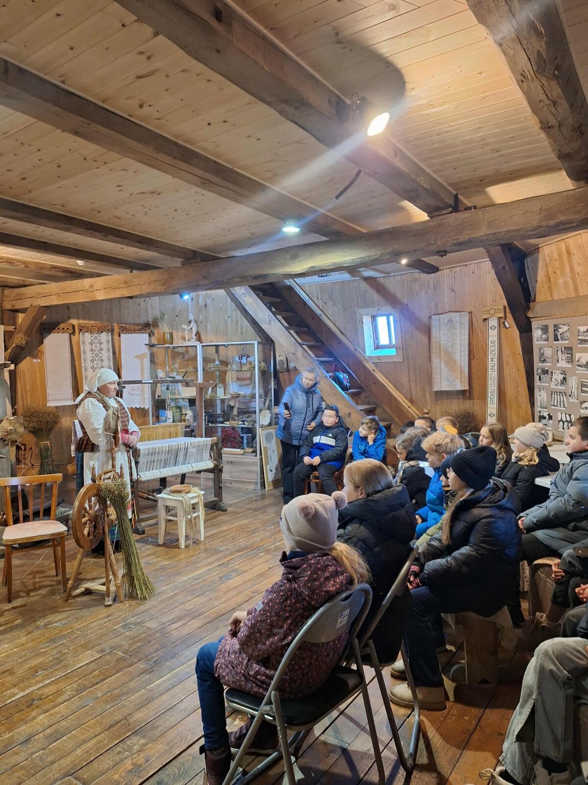 Trečiokai ir ketvirtokai lankėsi Upytės amatų centro linų muziejuje. Šimtamečiame malūne mus pasitiko tautiniais rūbais pasidabinusi edukatorė Elvyra. Ji papasakojo, kad lietuviai linus augino jau seniai. Linai minimi pačiose seniausiose lietuvių liaudies dainose – darbo dainos susijusios su auginimu, rovimu, verpimu. Tautosakoje linai vadinami šventu augalu, saulės žolynu, moters javu. Tikrų senovinių rakandų, vis dar veikiančių ir naudojamų mokymams, apsuptyje Elvyra artistiškai ir vaizdžiai, natūraliai parodydama visą vargšo lino kančios kelią, pasekė pasaką „Merga ir kipšas“, vaikai klausė susižavėję. Kol apžiūrėjome trečio aukšto unikalią ir gausią ekspoziciją, Elvyra mums parengė ruošinius angelų iš lino gamybai. Mokiniai ir mokytojos pasigamino dailius lininius angeliukus.