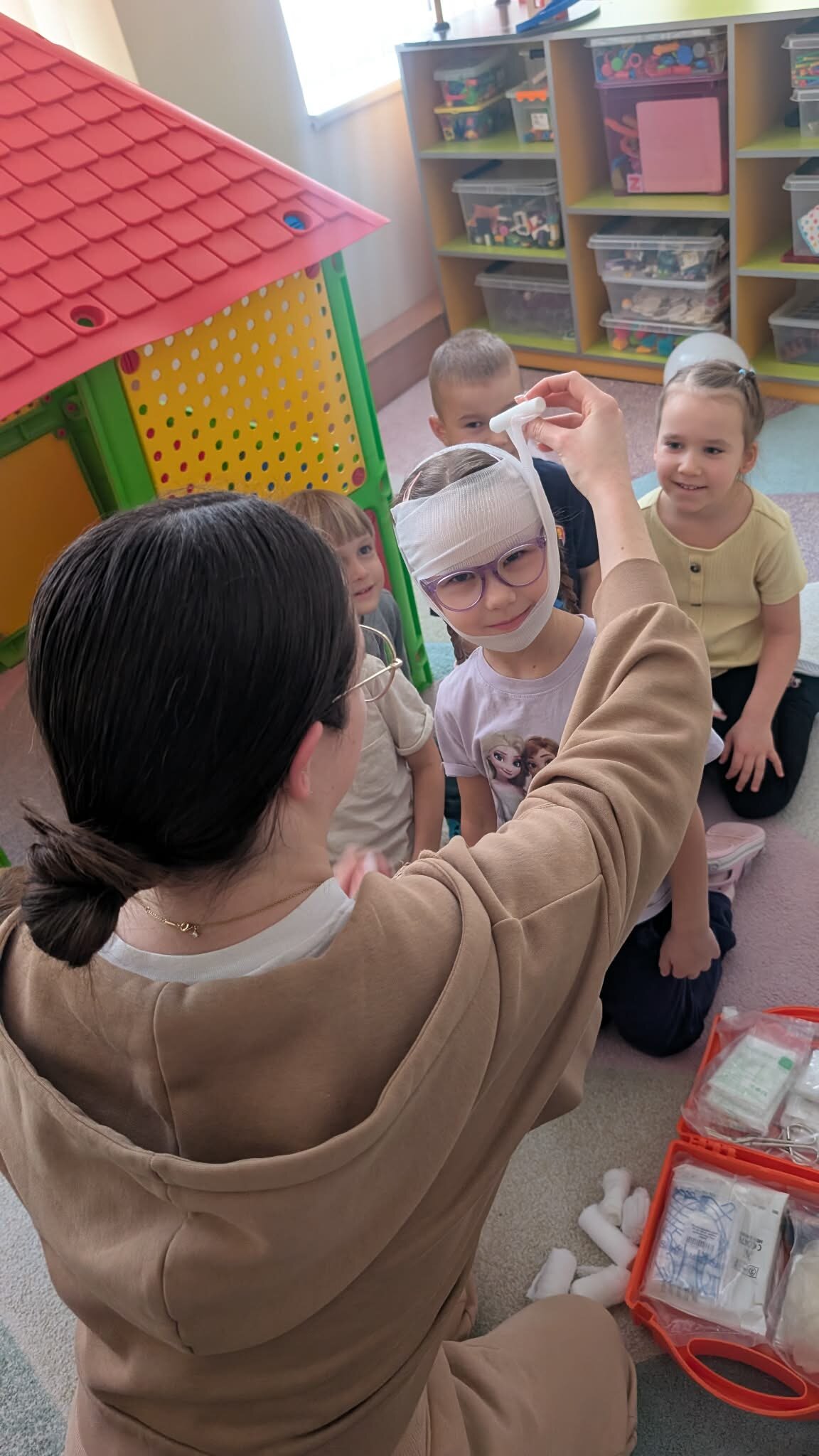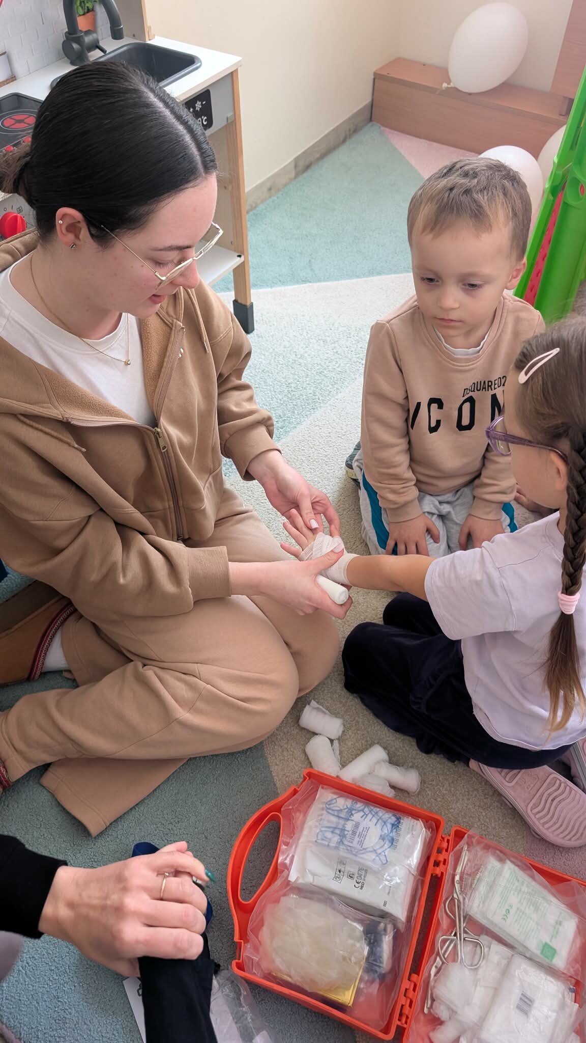 Praktinė pamokėlės dalis vaikams buvo ypač įdomi: jie turėjo galimybę patys subintuoti draugui ranką ar koją, įtvirtindami teorines žinias ir lavindami motorinius įgūdžius. Vaikai taip pat pirmą kartą susipažino su prietaisu „turniketu“ – specialistė paaiškino, kaip juo kontroliuoti stiprų kraujavimą kritinių traumų atvejais. Užsiėmimas skatino diskusijas, klausimų uždavinėjimą ir vaikų refleksiją apie saugų elgesį žiemą bei mokė atsakingai reaguoti pavojingose situacijose.