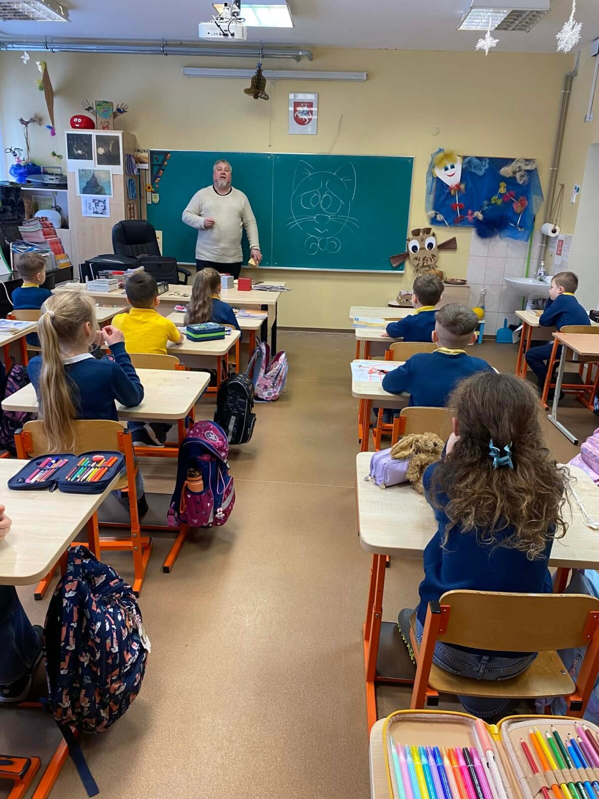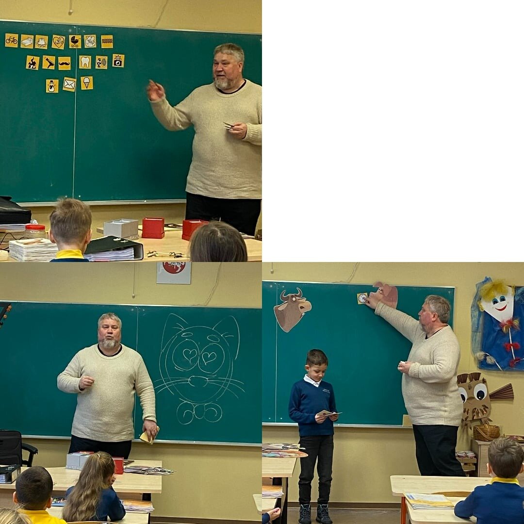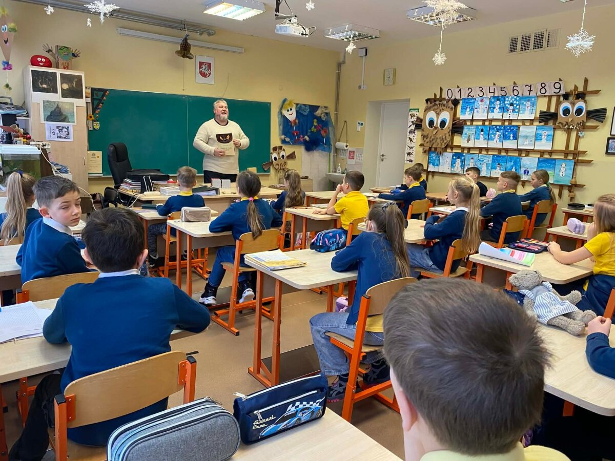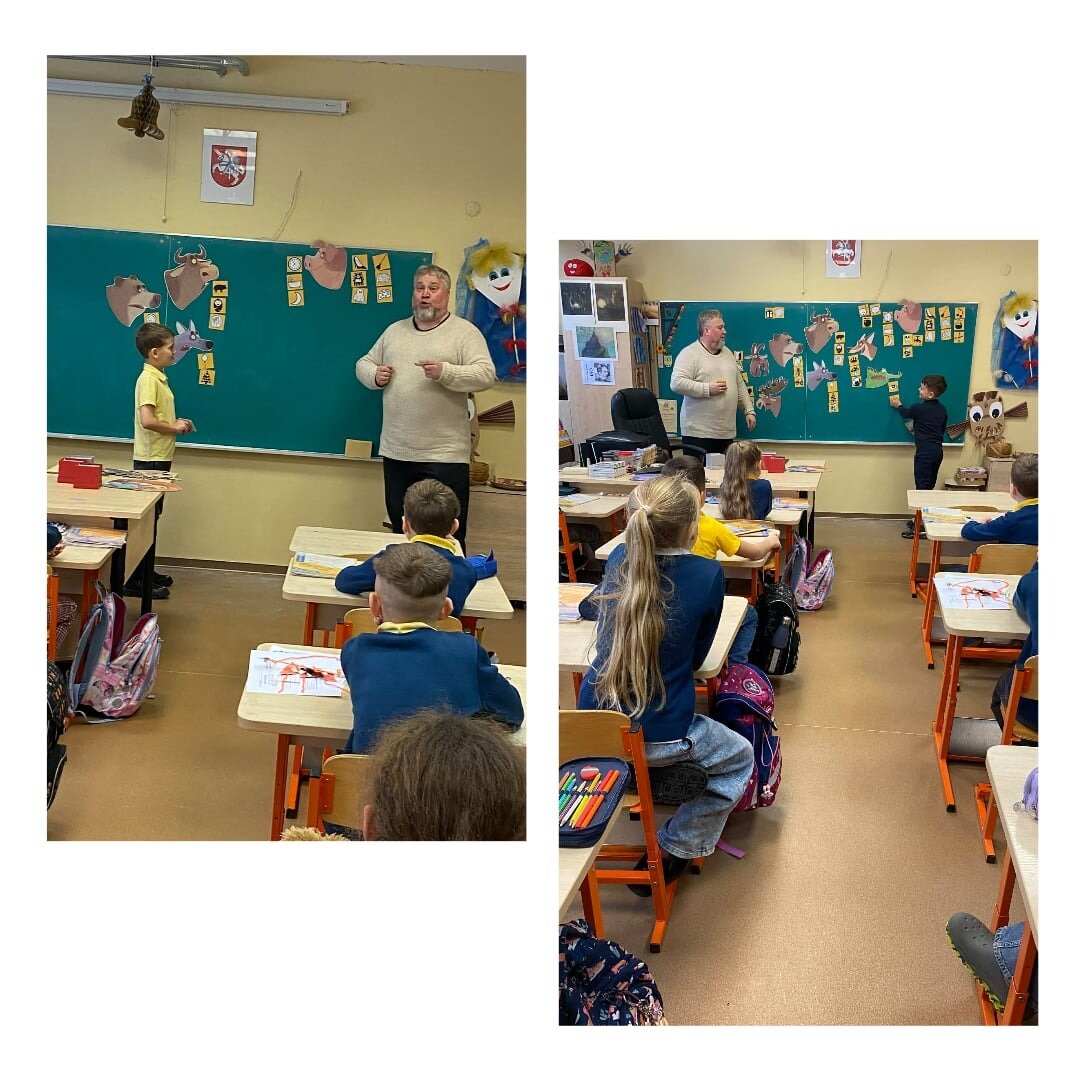Vasario 24 dieną progimnazijoje svečiavosi vaikų knygelių rašytojas, dailininkas-iliustratorius Dainius Šukys, kuris 1-4 klasių mokiniams vedė nuotaikingą edukaciją „Kuriame pasaką“.