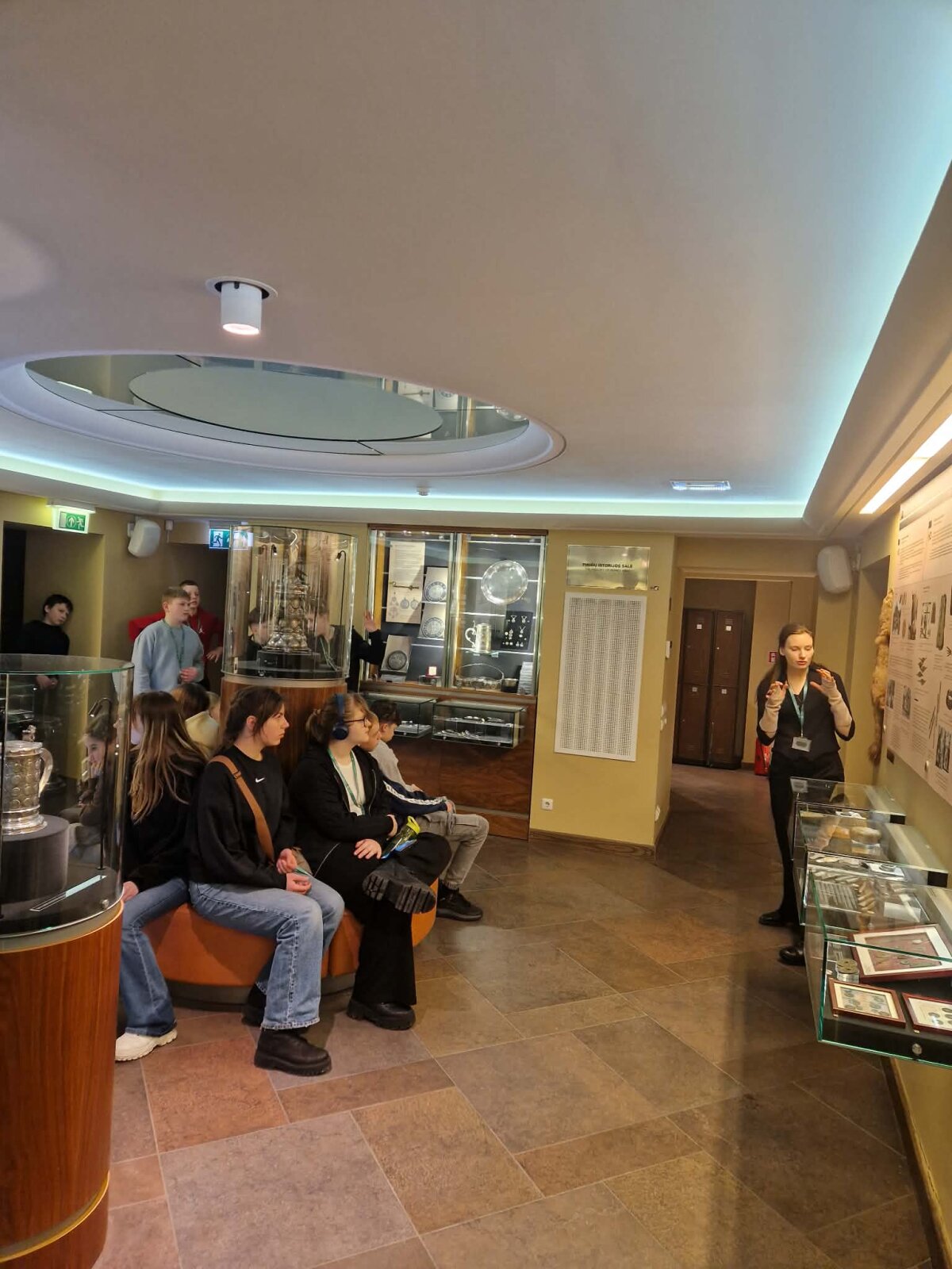 Nuvykę, pirmiausia, savo energiją iškrovėme ,,360 arenoje”. Pasilinksminę pasivaikščiojome Gedimino prospekte. Apsilankėme ir ,,Pinigų muziejuje.” Gidė mums papasakojo apie pirmuosius pinigus, infliaciją ir kaip atsirado banknotas. Galėjome pasižiūrėti, kiek mes būtume verti , jei staiga pavirstume aukso statulomis. Galiausiai išsprendėme testuką ir, kas gavo teigiamą taškų skaičių, išsispausdino vieno muštinio vertės banknote.